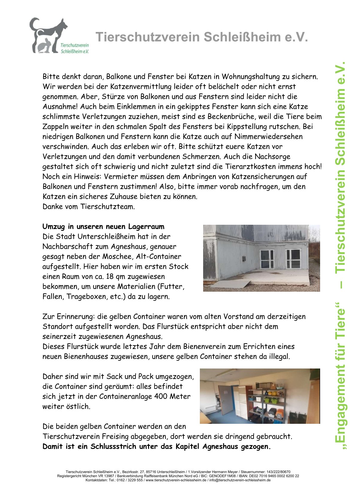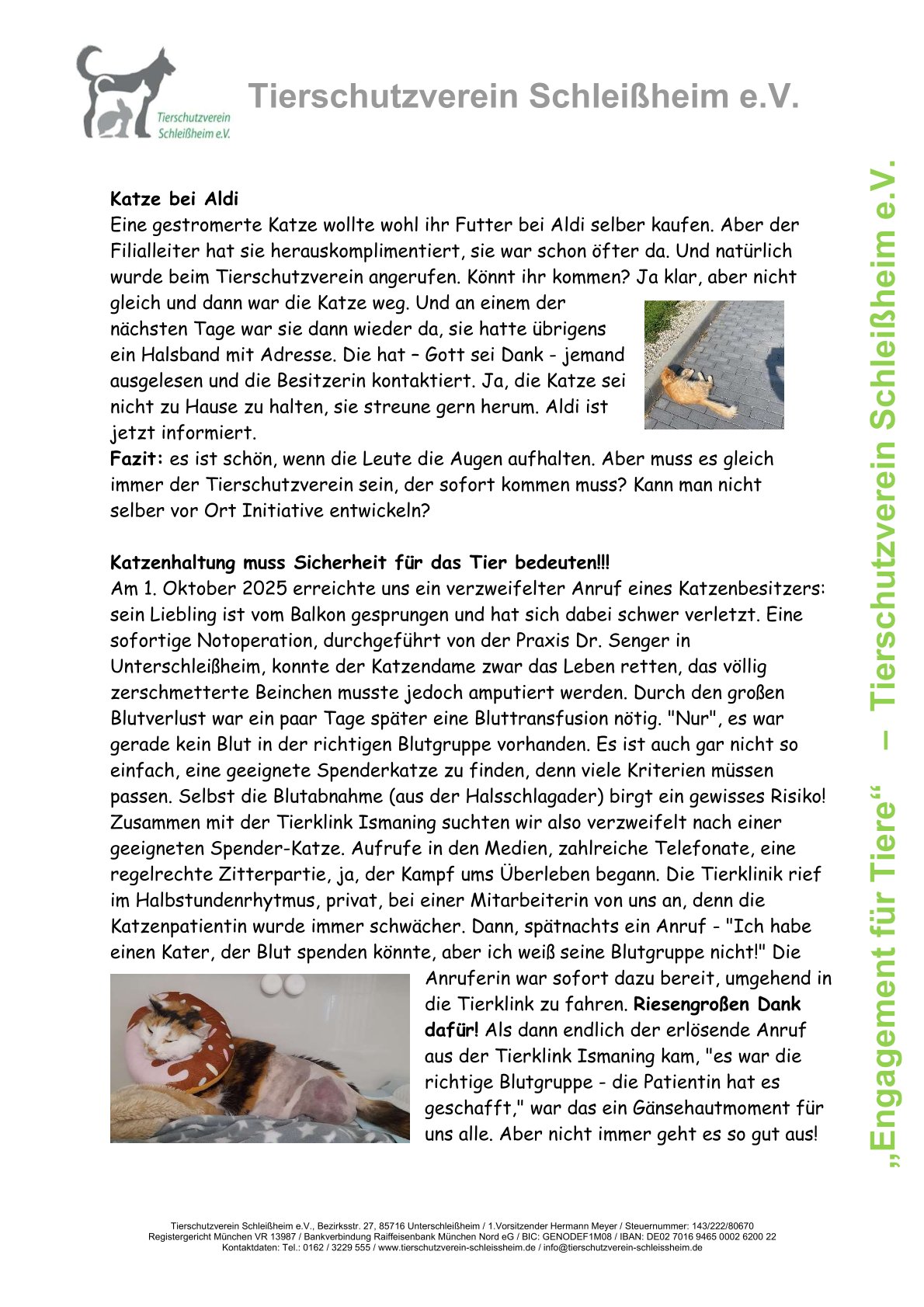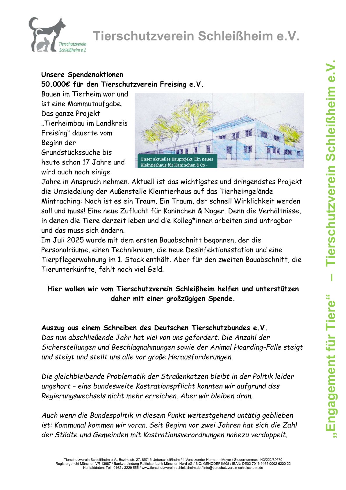 Fünfter Infobrief Tierschutzverein Schleissheim e.V. Veröffentlicht am 11. Dezember 2025 von Elli11. Dezember 2025 Zur vollständigen Version des Infobriefes: